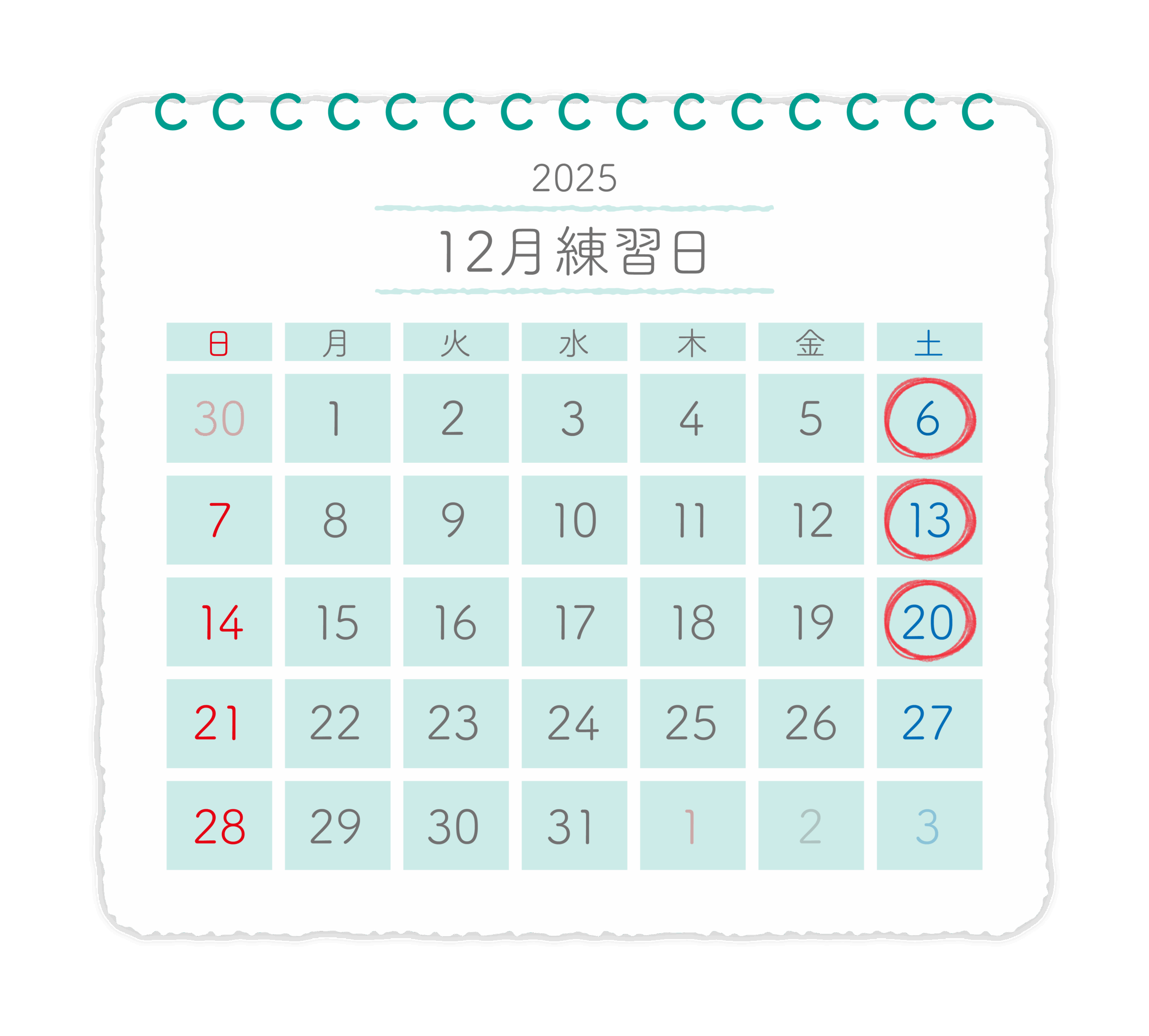 2025.11.12 12月の練習日を公開しました。保護者の方は出欠のご入力をお願いいたします。